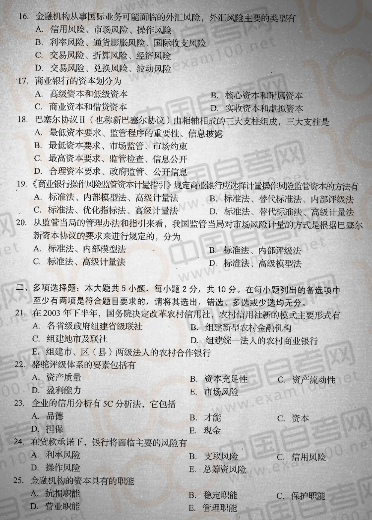 四川2018年10月自考08390《金融风险控制与管理》真题及答案