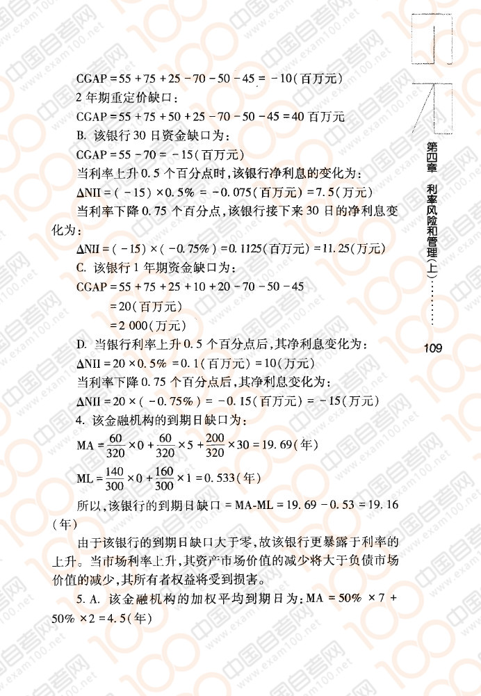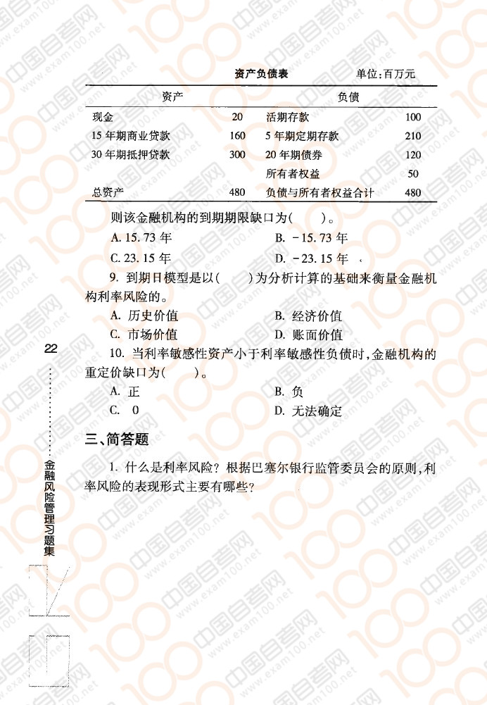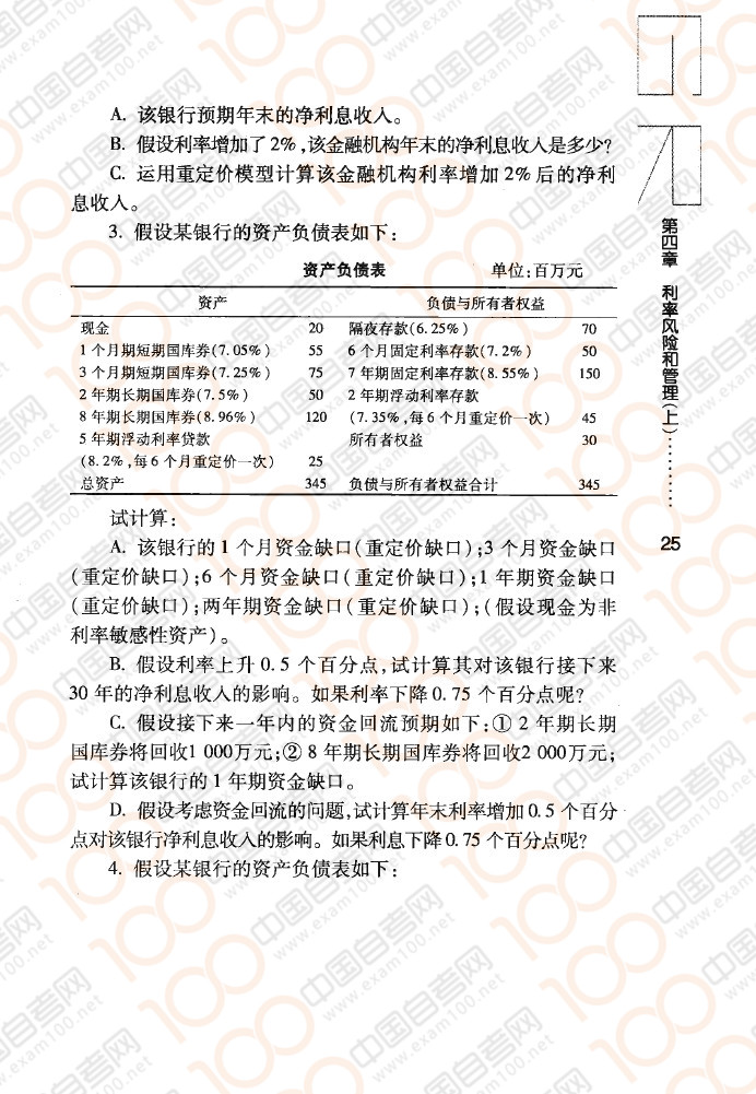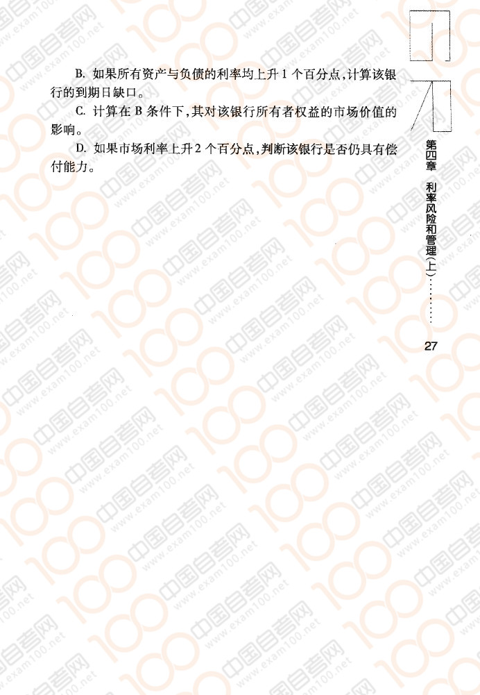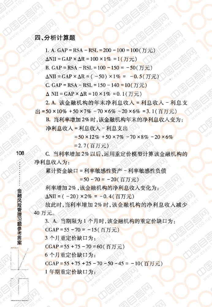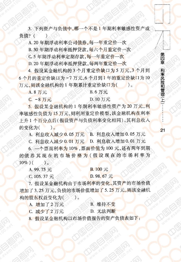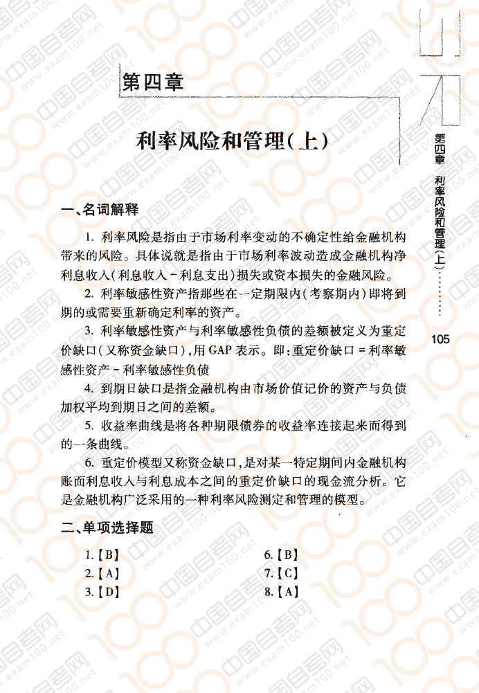 四川自考08390《金融风险控制与管理》章节练习:利率风险和管理(上)