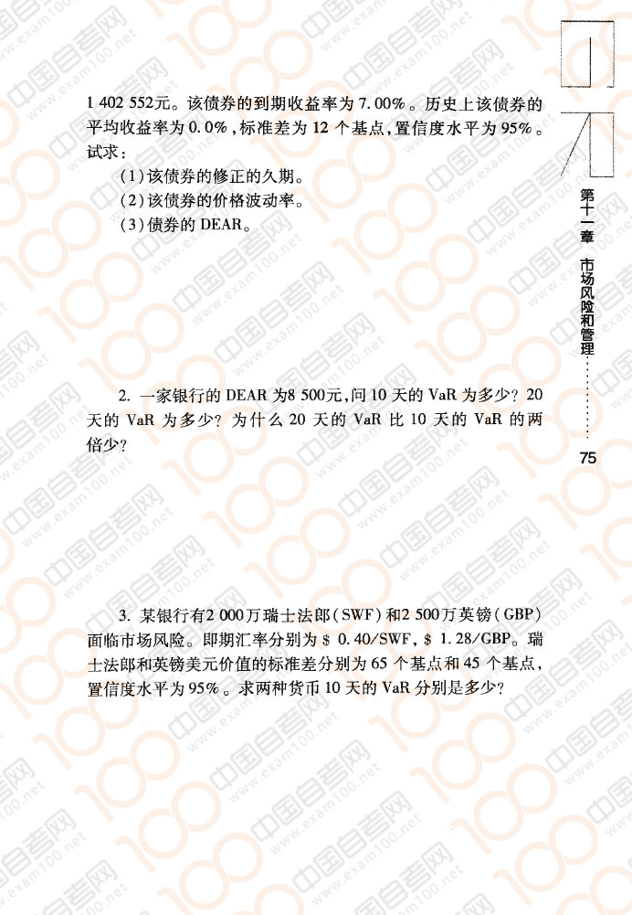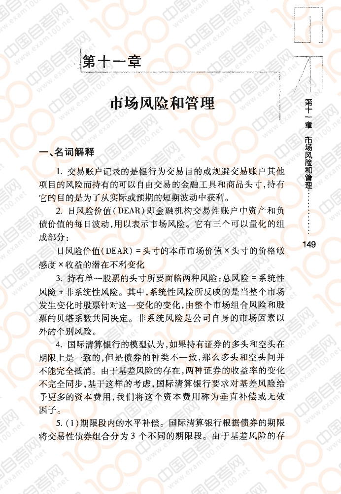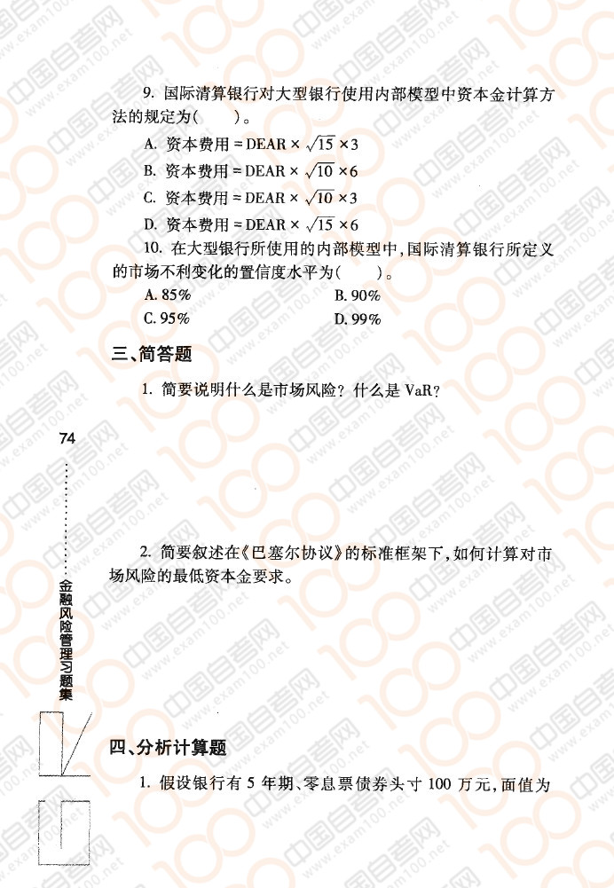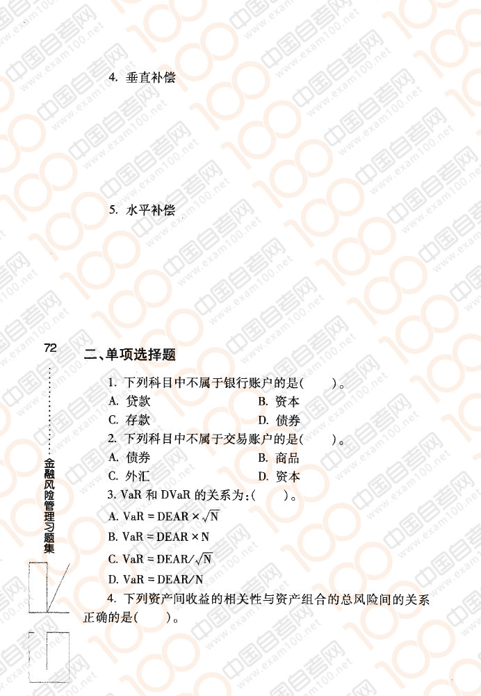 四川自考08390《金融风险控制与管理》章节练习:市场风险和管理