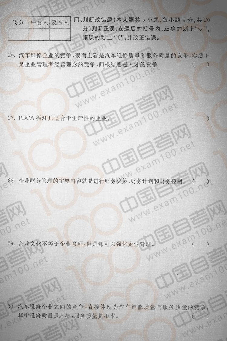 四川2013年10月自考08590《汽车维修企业管理》真题