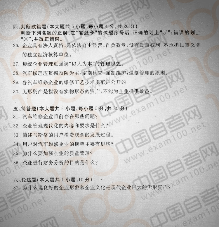 四川2017年4月自考08590《汽车维修企业管理》真题