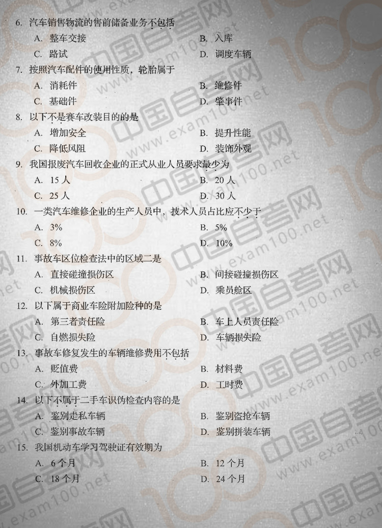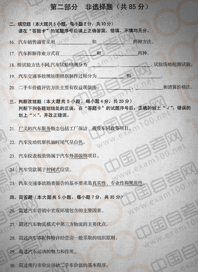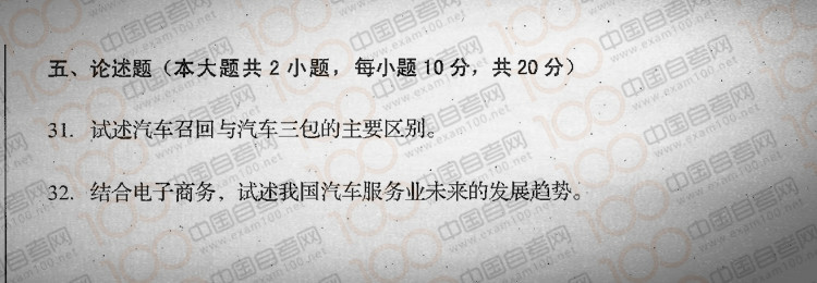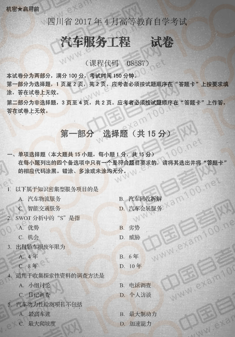 四川2017年4月自考08587《汽车服务工程》真题