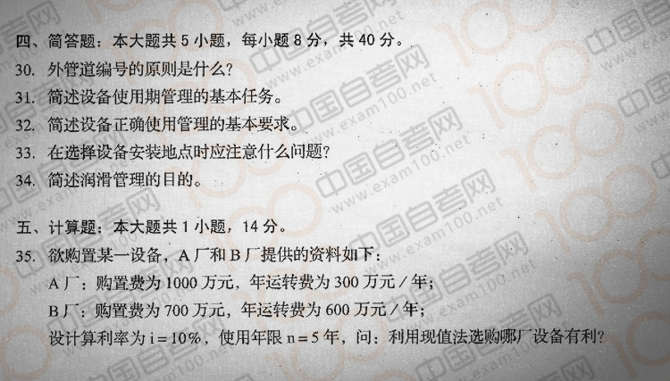 四川2018年4月自考08300《机电设备管理》真题
