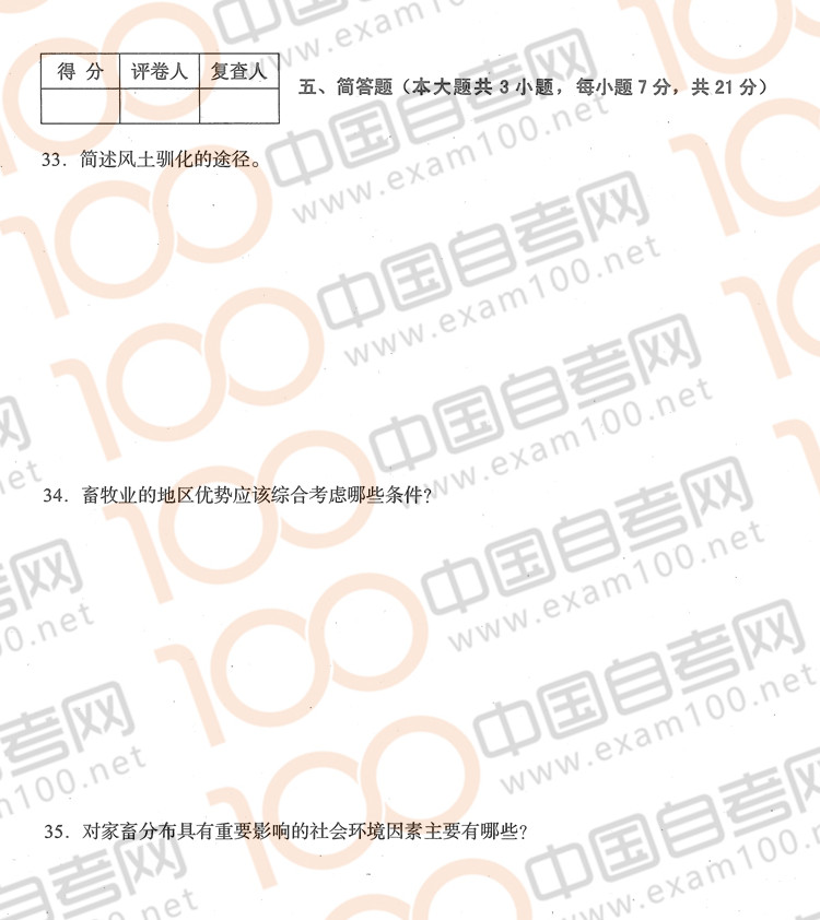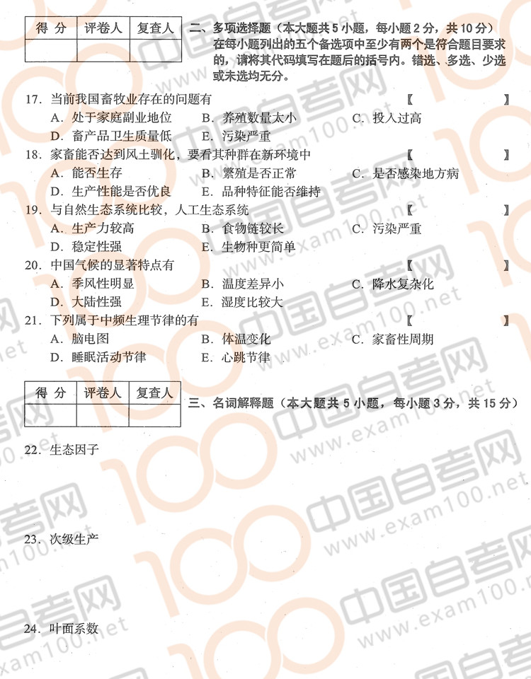 四川2014年10月自考06494《家畜生态学》真题