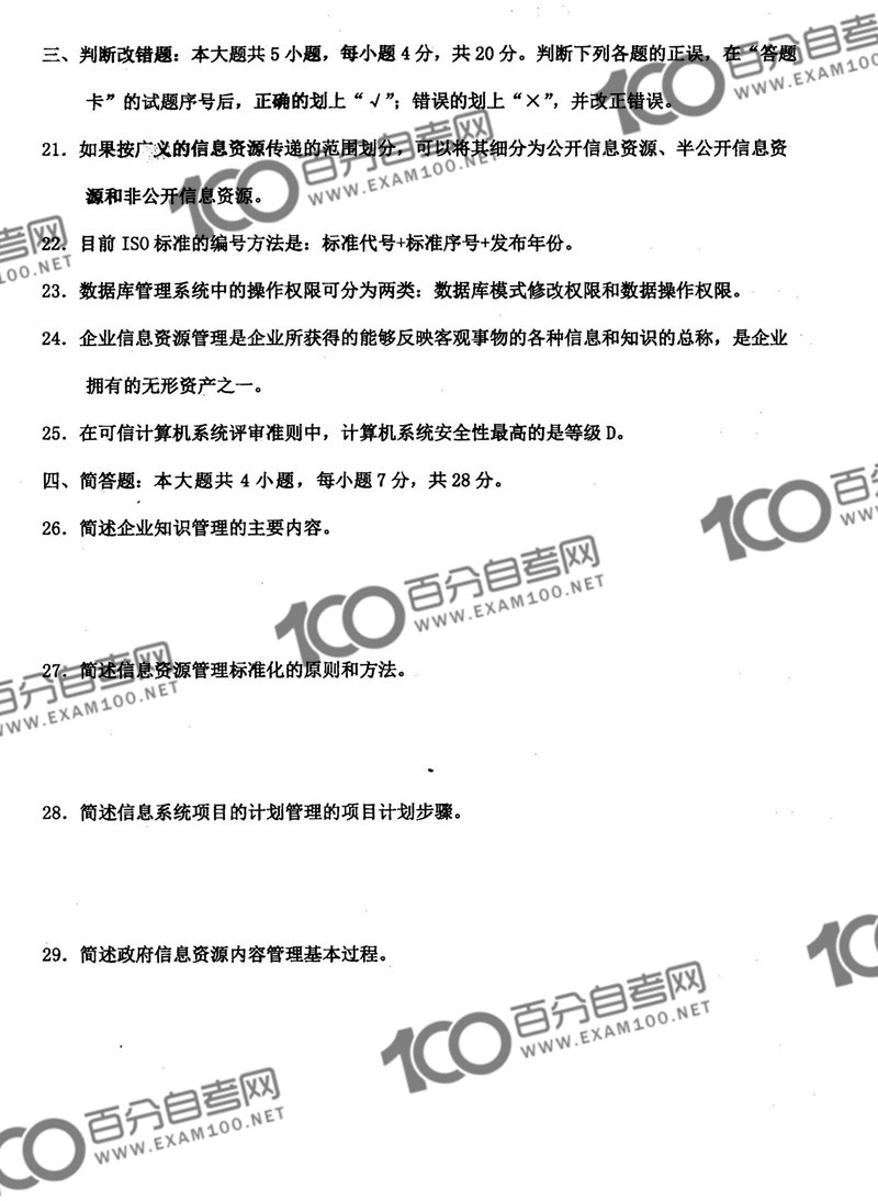 四川2019年4月自考02129《信息资源建设》试题