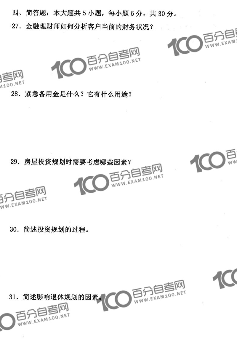 四川2019年10月自考08019《理财学》真题
