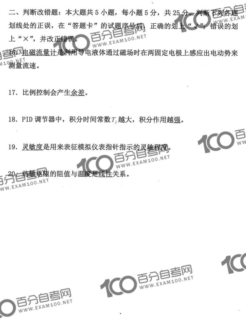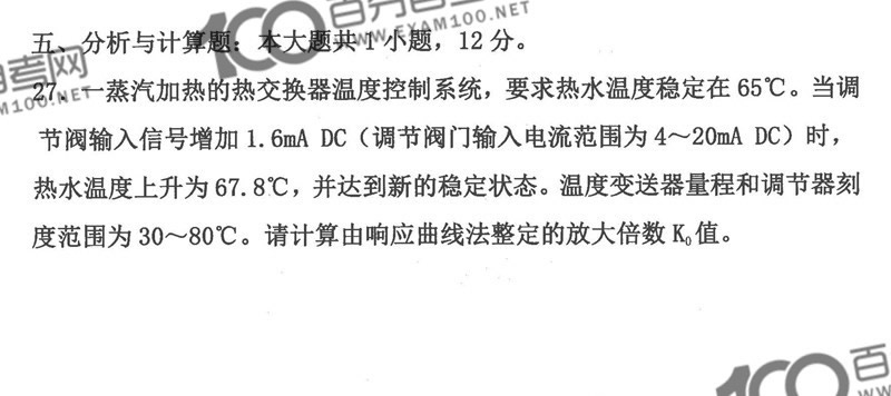 四川2017年10月自考08239《工业过程与过程控制》真题